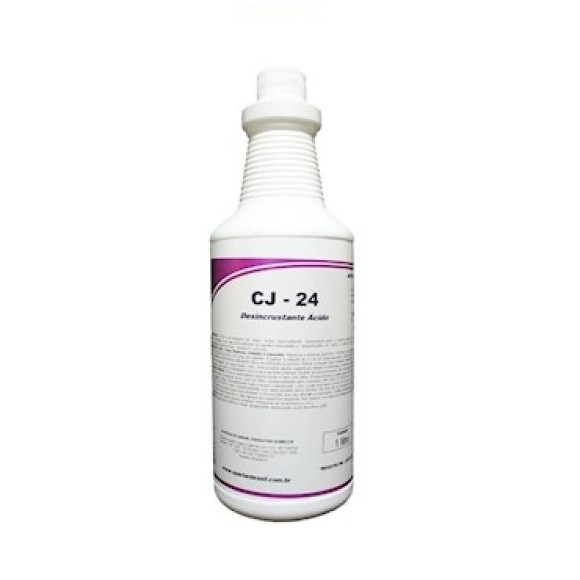 CJ-24 é um limpador de base ácida especialmente desenvolvido para a limpeza de sujeiras muito arraigadas em superfícies de cimento, concreto e pedras porosas em geral, com exceção de pedra ardósia, granito, granilite e mármore. Formulado com alta concentração de agentes umectantes e emulsificantes de modo a manter um grande poder de limpeza.
