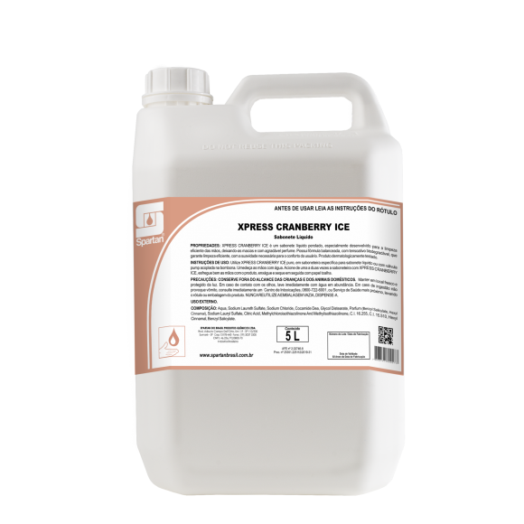 XPRESS CRANBERRY ICE é um sabonete líquido perolado, especialmente desenvolvido para a limpeza eficiente das mãos, deixando-as macias e com agradável perfume frutal. Possui fórmula balanceada, com tensoativo biodegradável que garante limpeza eficiente, com a suavidade necessária para o conforto do usuário. Produto dermatologicamente testado.